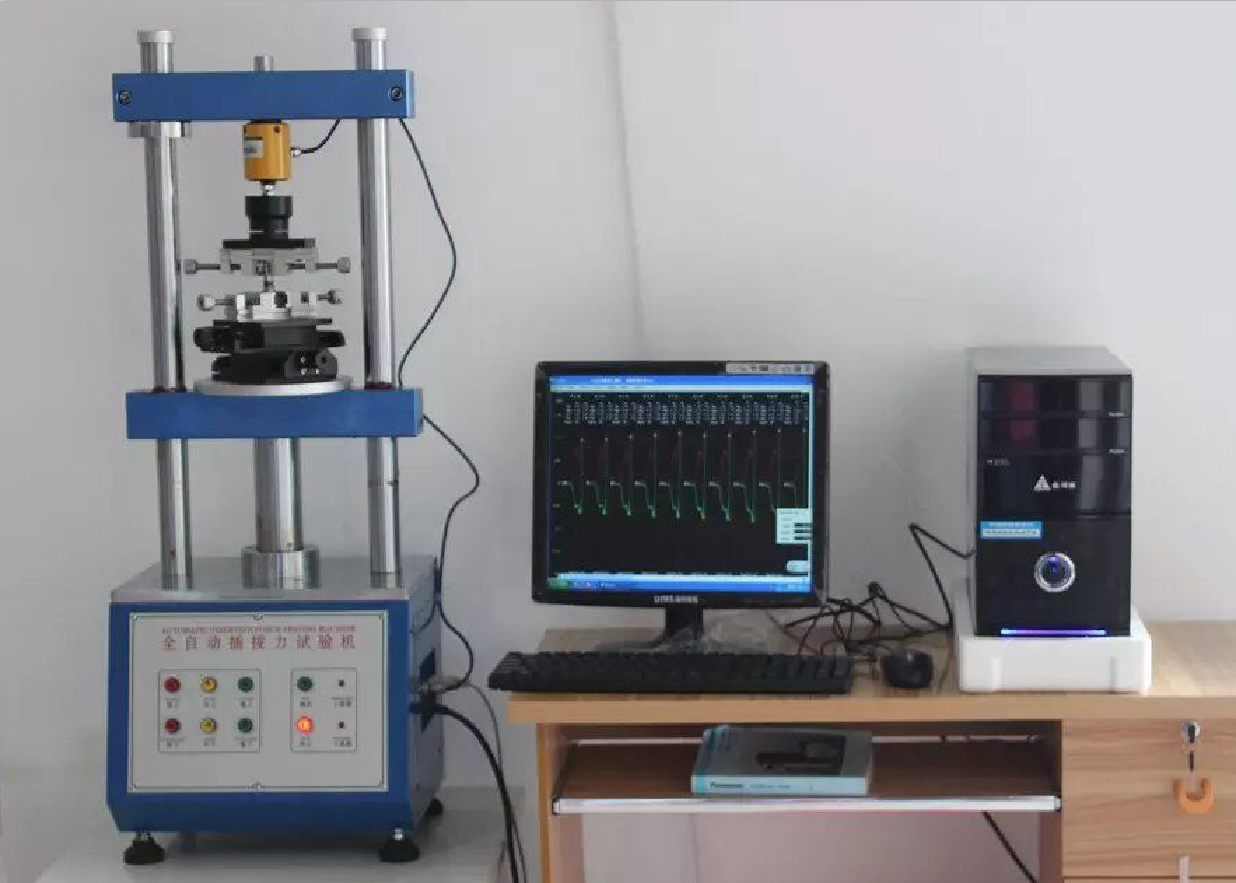 本機(jī)器適用於各種連接器之插入力及拔出力測(cè)試 , 搭配專(zhuān)利設(shè)計(jì)之自動(dòng)求心裝置 , 將可得到全準(zhǔn)確之插拔力試驗(yàn) , 利用 WINDOWS, 視窗中文畫(huà)面設(shè)定 , 操作簡(jiǎn)單方便 , 且所有資料皆可儲(chǔ)存 ( 試驗(yàn)條件、位移曲線圖、壽命曲線圖、檢查報(bào)表……等等 )